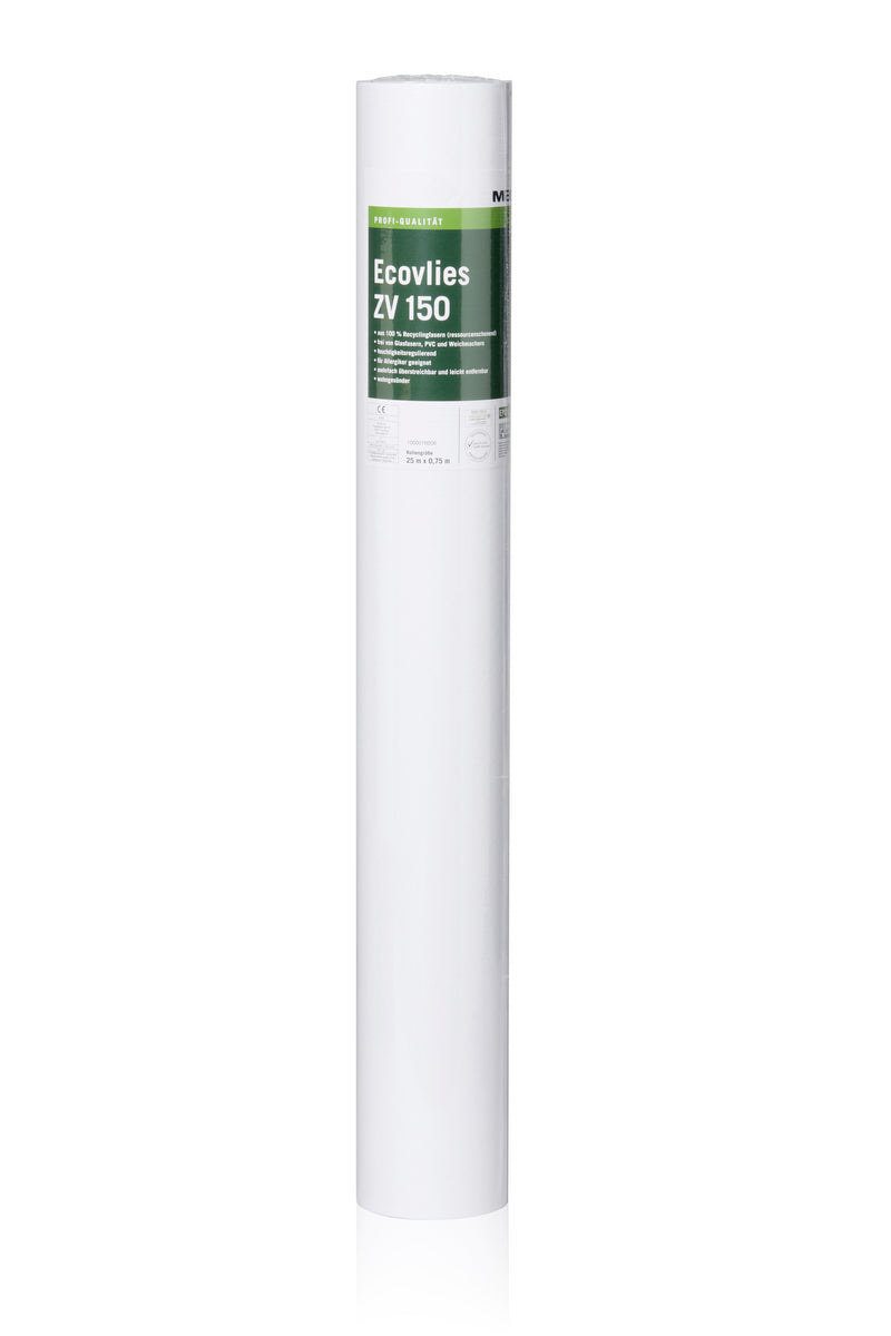 MEGAgrün EcoVlies ZV 150: Das EcoVlies ist frei von Glasfasern, PVC und Weichmachern und eignet sich hervorragend für die ökologische Renovierung. Durch den 100 %igen Einsatz besten Altpapiers entsteht ein optimaler weißer Farbton, der im Zusammenspiel mit der glatten Oberfläche den Farbverbrauch beim Überstreichen reduziert.