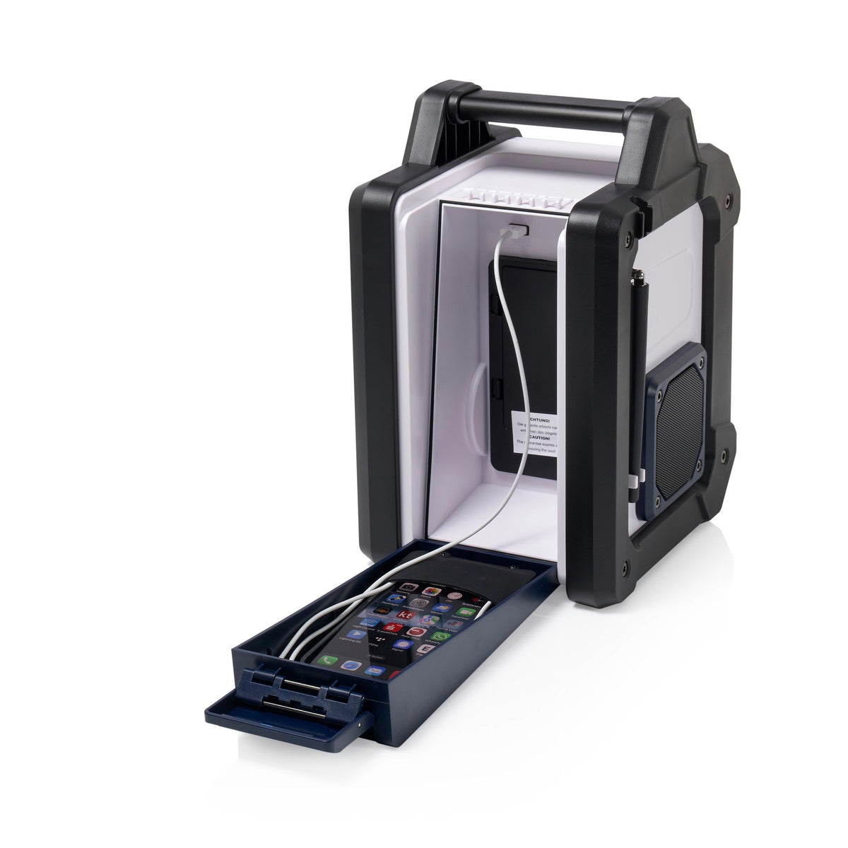 • 30 voreingestellte Sender • 2.4 Farbdisplay • Soft Antenne • USB-Aufladung für Smartphone • Aufbewahrungsbox für Smartphone • Anschlüsse: DC-Buchse, 3,4-mm-Aux-In • Ausgang: 2 x 15 W9 V/2 A • Lautsprecherkanäle: Stereo • Stromversorgung über Netzteil • 4000-mAh-Akku – Laufzeit: 8 - 10 Std • Bluetooth V 5.0 • Robuster Schutzrahmen und Griff • Schutzklasse: IPX54