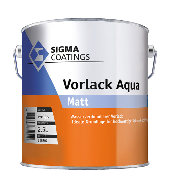 SIGMA Vorlack Aqua ist ein matter, wasserverdünnbarer Acryl-Vorlack mit gutem Verlauf und schneller Trocknung, für innen und außen. Für Grund- und Zwischenbeschichtungen auf allen üblichen Untergründen wie Holz, Holzwerkstoffen, Metallen, NE-Metallen, beschichtungsverträglichen Kunststoffen nach entsprechender Vorbehandlung. Aufgrund seines guten Deckvermögens bildet SIGMA Vorlack Aqua die optimale Basis für eine Überarbeitung mit den SIGMA Torno - und SIGMA Contour Aqua-PU - Lacken.